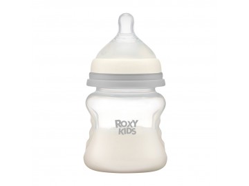 Бутылочка с антиколиковой соской ROXY-KIDS, объем 120 мл, медленный поток 0+, цвет кокосово-серый