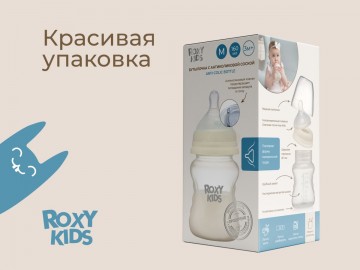 Бутылочка с антиколиковой соской ROXY-KIDS, объем 160 мл, средний поток, 3 мес+, цвет кокосовый
