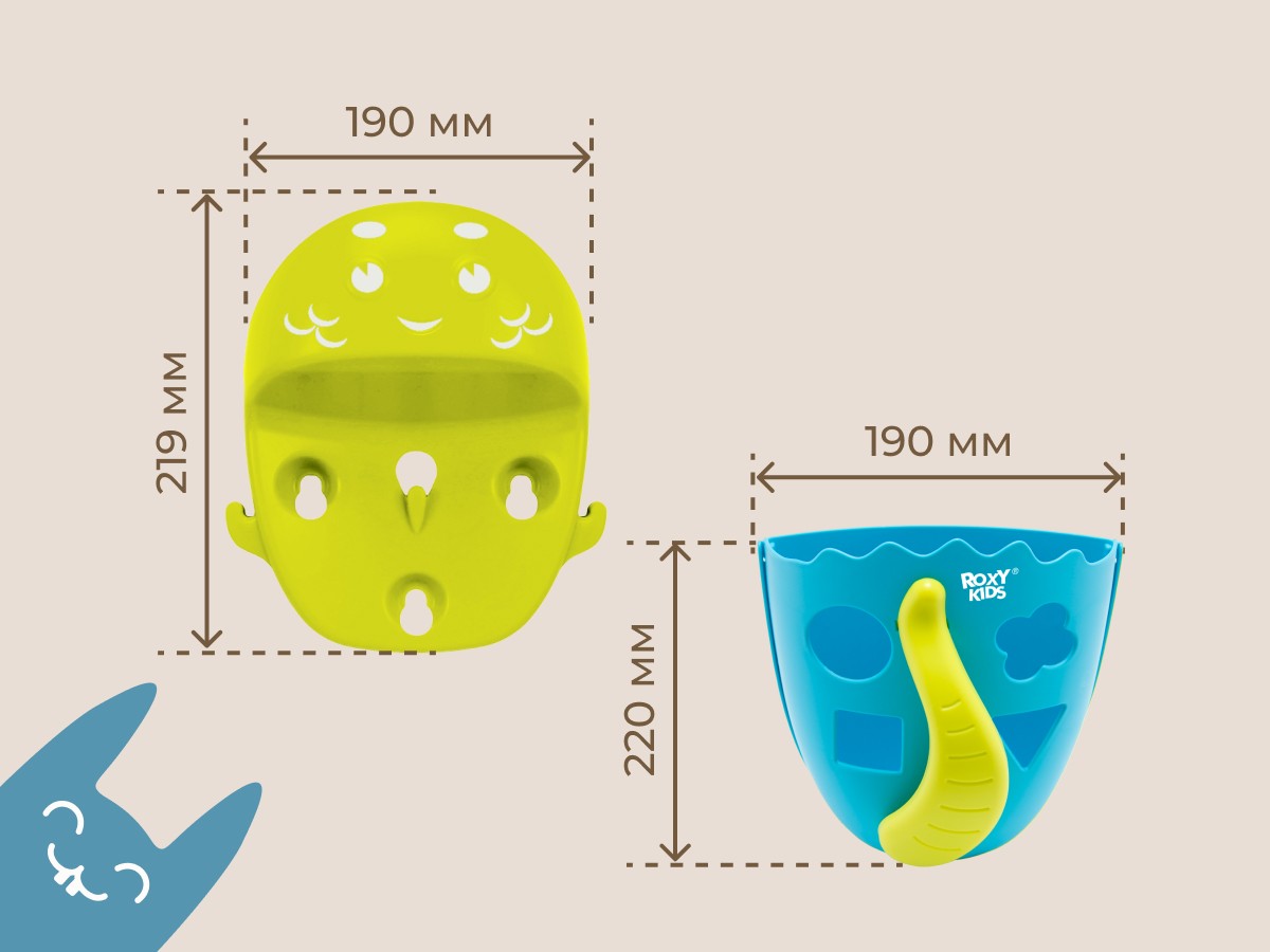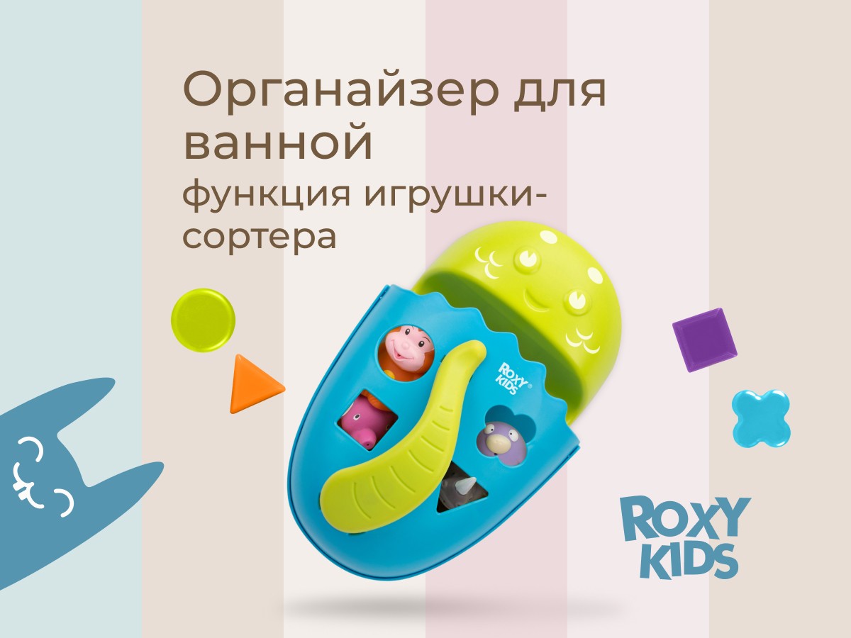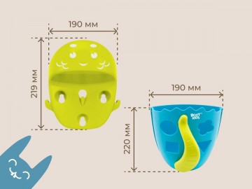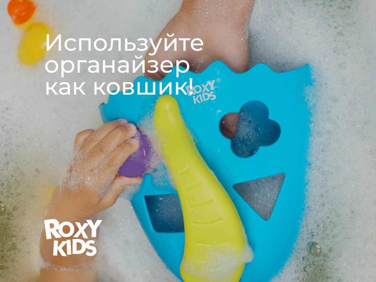 Органайзер с полкой для хранения игрушек и банных принадлежностей DINO от ROXY-KIDS является улучшенной версией стандартного органайзера. На дополнительную полку в конструкции можно поставить шампунь и гель для душа, а на крючки по бокам повесить мочалки. Если убрать полку, то при помощи органайзера можно быстро собрать все игрушки из воды. Органайзер надежно крепится на любые гладкие поверхности при помощи трех присосок, которые есть в комплекте. Повесьте базу в удобное место и все необходимое будет у вас под рукой. Отверстия для слива помогают быстро осушить органайзер и препятствуют образованию плесени. Соответствует стандартам безопасности товаров для детей. В ассортименте есть несколько цветов.