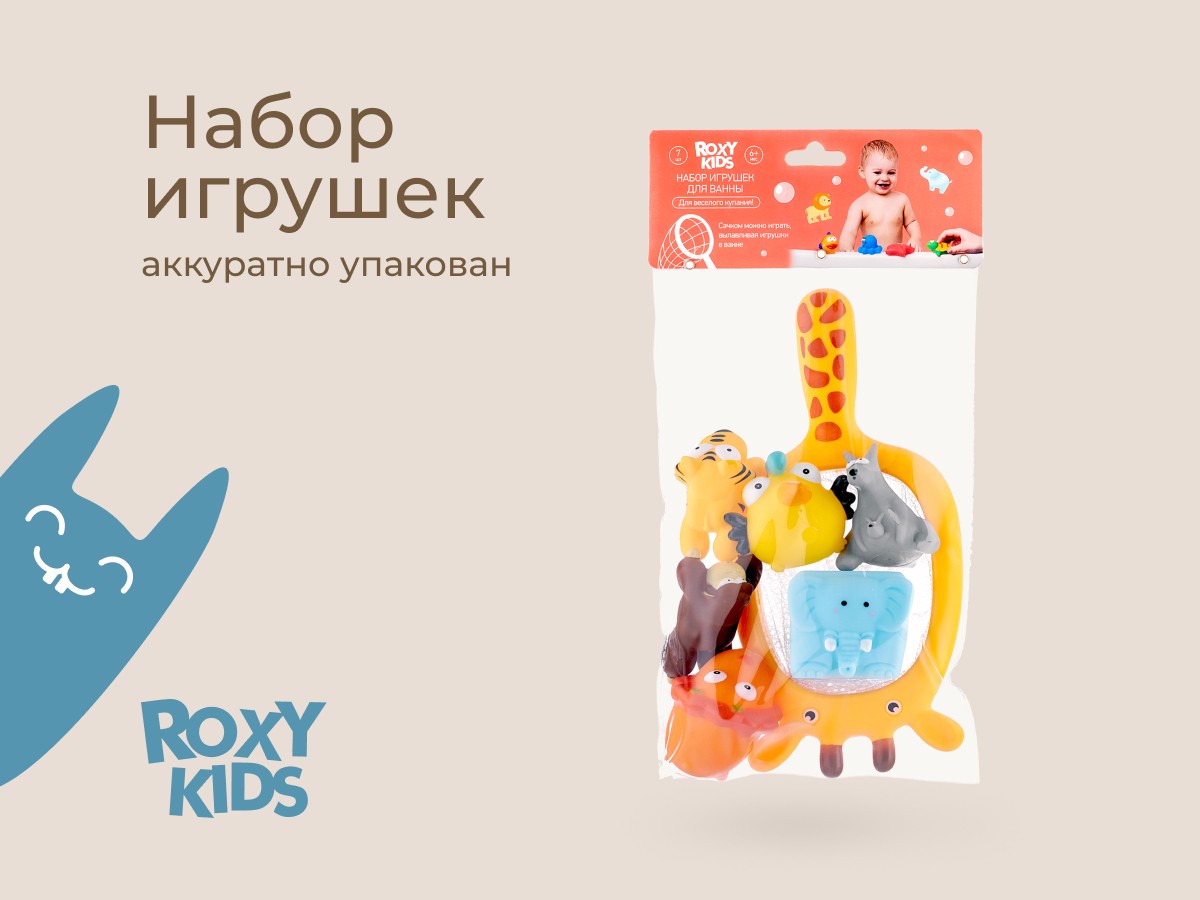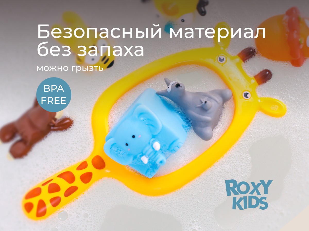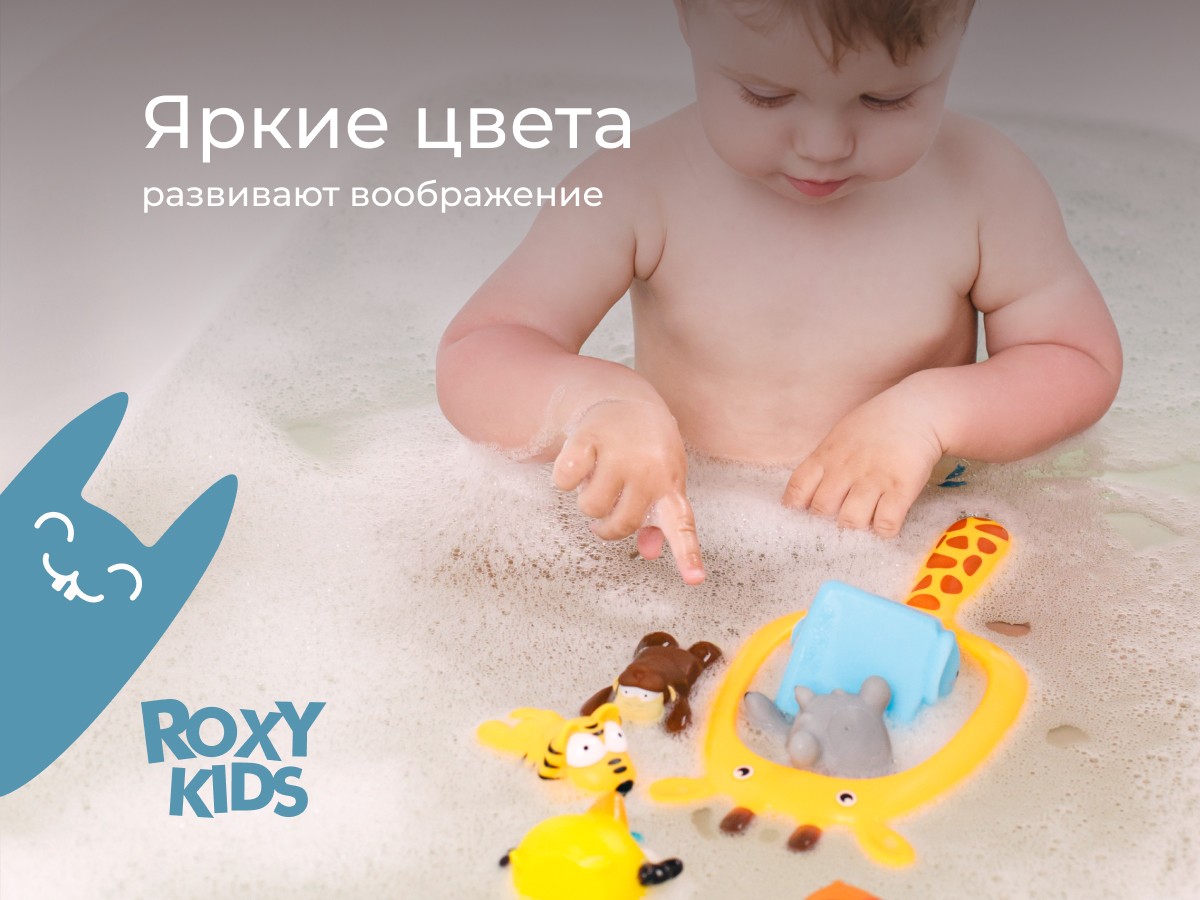 Яркие плавающие детские игрушки для ванной развеселят вашего малыша во время купания. Они имеют оптимальный размер, чтобы ребенок мог легко взять в руку любую игрушку. Игрушки не тонут, поэтому их можно пустить их в плавание. Игрушки изготовлены из нетоксичных материалов и абсолютно безопасны для детей. Вылавливая игрушки сачком, ребенок будет развивать координацию, внимание и моторику рук. Игрушки удобны для захвата и имеют приятную на ощупь поверхность. Благодаря спаянной форме изделия не тонут и хорошо держатся на воде. Развивают воображение и цветовое восприятие. Учат различать формы. Позволяют наблюдать за свойствами предметов в воде. Благодаря небольшому размеру не займут много места в ванной. Яркие цвета не позволят им затеряться под слоем пены. Быстро сохнут и просты в уходе. Одного набора игрушек с лихвой хватит, чтобы занять малыша на все время купания. А чтобы быстро собрать и промыть их после, используйте органайзер для игрушек и мыльных принадлежностей. Не имеют отверстия внутри, что предотвращает появление плесени и неприятных запахов. В ассортименте ROXY-KIDS есть несколько наборов игрушек.