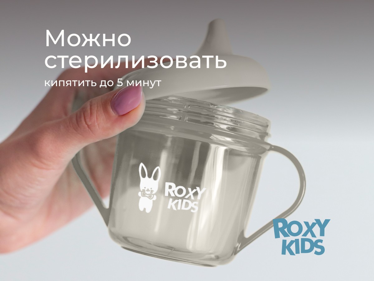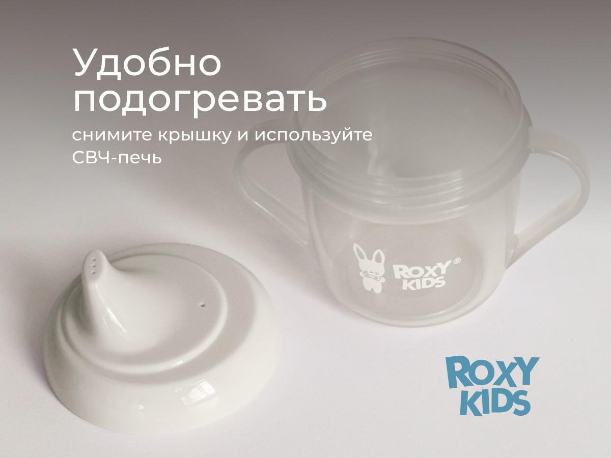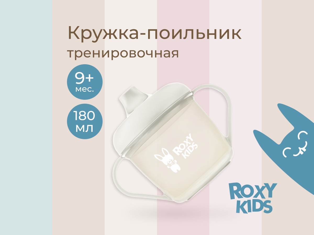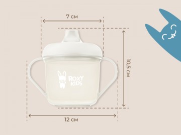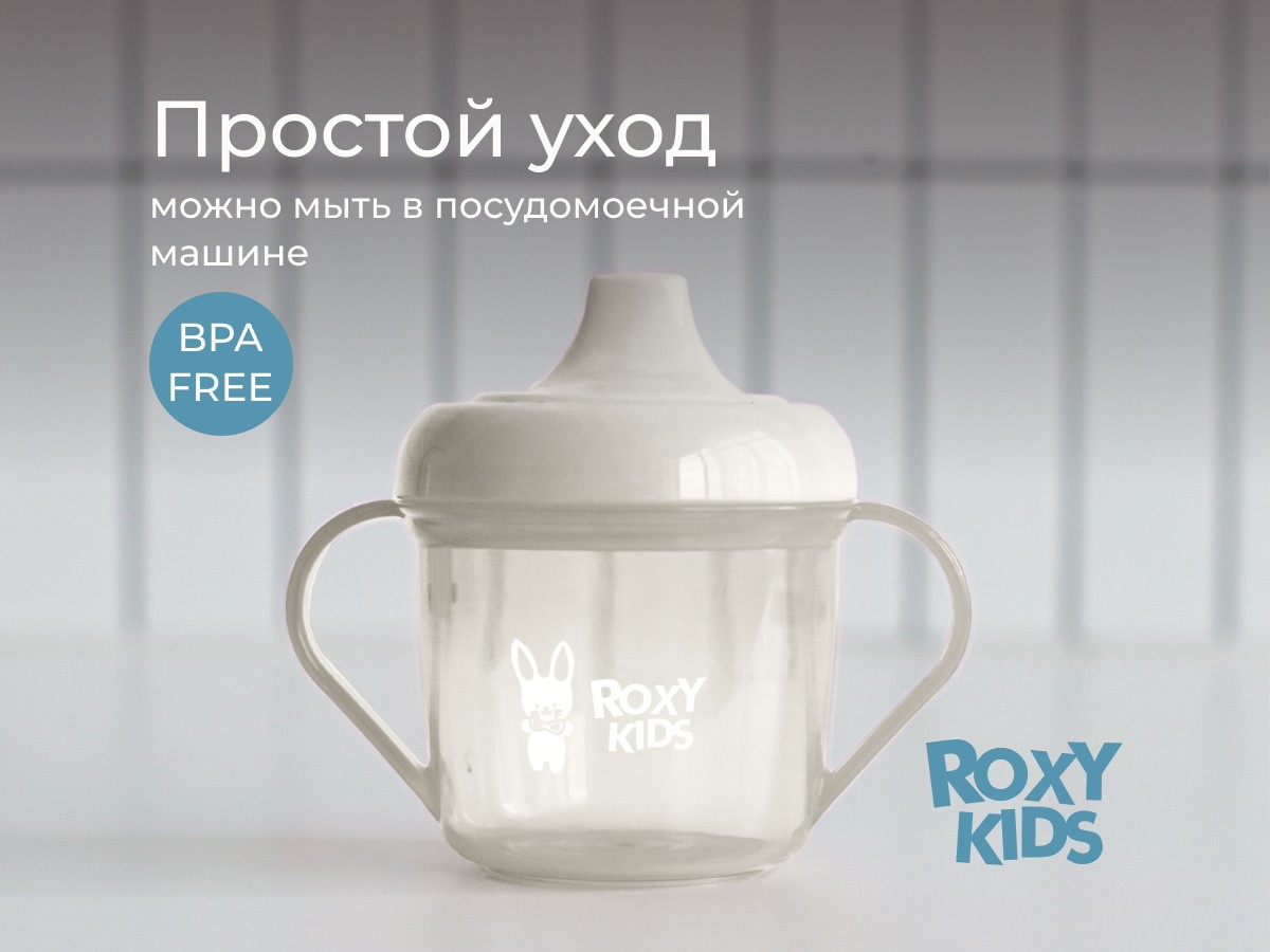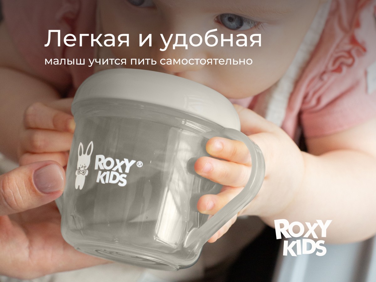 Тренировочная кружка-поильник с носиком ROXY-KIDS поможет малышу научиться пить самостоятельно и привыкнуть к использованию обычной чашки. Поильник подходит для использования дома, на прогулках и в путешествиях. Эргономичная форма носика обеспечивает правильное положение губ и шеи ребёнка, плотная крышка предотвращает проливание жидкости. Легкий вес кружки и удобная форма ручек обеспечивают комфорт малышу во время питья. Твёрдый носик не травмирует чувствительные десны и зубы ребенка. Яркий дизайн привлечет внимание малыша и сделает процесс кормления веселым и беззаботным! Поильник можно мыть в посудомоечной машине и разогревать в СВЧ-печи без крышки.