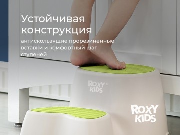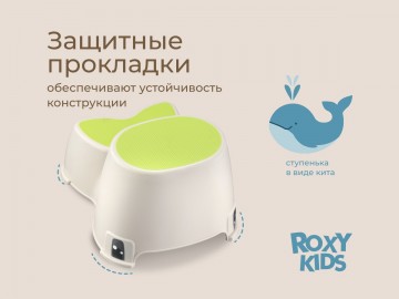 Детская ступенька для унитаза в виде кита поможет приучить подрастающего малыша к самостоятельности. Она поможет усадить его на унитаз, приподнимет на нужный уровень для чистки зубов у раковины и позволит добраться до любых высоких поверхностей. Кроме того, ступеньку можно использовать как многофункциональный стул для мамы и малыша. Система ребер жесткости в основании обеспечит максимальную прочность и надежность, потому что ступенька выдерживает вес более 100 кг. Прорезиненное покрытие ступенек исключает скольжение детских ножек, тактильно приятно и обеспечивает массажный эффект. Защитные накладки в нижней части ступеньки обеспечивают устойчивость конструкции. Благодаря интересному дизайну в виде кита можно применять игровой момент при приучении ребенка к гигиеническим процедурам с использованием ступеньки. В ассортименте ROXY-KIDS имеются несколько цветов данной лесенки-ступеньки.