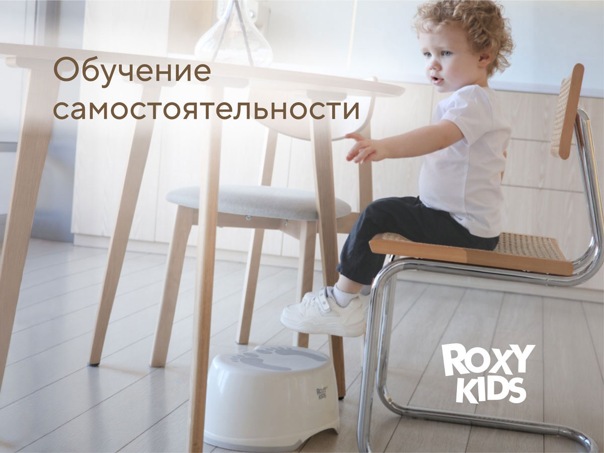 Детская ступенька поможет приучить подрастающего малыша к самостоятельности. Она поможет усадить его на унитаз, приподнимет на нужный уровень для чистки зубов у раковины и позволит добраться до любых высоких поверхностей. Кроме того, ступеньку можно использовать как стульчик для мамы и малыша. Система ребер жесткости в основании обеспечит максимальную прочность и надежность. Прорезиненное покрытие ступеньки исключает скольжение детских ножек, тактильно приятно и обеспечивает массажный эффект. Защитные накладки в нижней части ступеньки обеспечивают устойчивость конструкции. Ступенька компактная и занимает мало места при хранении. В ассортименте ROXY-KIDS имеется несколько видов ступенек различных цветов.