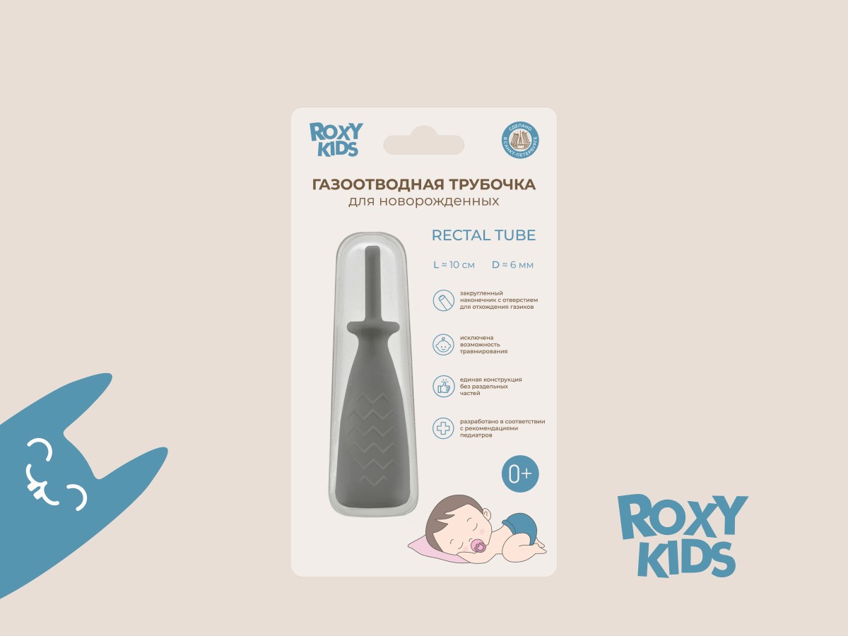 Газоотводная трубка для новорожденных от ROXY-KIDS является многоразовой и позволяет быстро и эффективно облегчить отхождение газов и уменьшить боль от коликов в животике. Уникальность данного изделия состоит в возможности его многоразового применения, а также в атравматичном наконечнике, что позволяет безболезненно и комфортно вводить трубочку. Трубка может использоваться в больницах или в домашних условиях. При использовании трубочки исключена возможность травмирования, потому что в конструкции предусмотрен ограничитель для безболезненного и безопасного проведения процедуры. Сделана из гипоаллергенного современного полимера ТЭП, безопасного для здоровья малыша. Трубочка имеет единую конструкцию без раздельных частей. Допустима стерилизация кипячением. В ассортименте ROXY-KIDS представлены 2 вида дизайна газоотводных трубочек. Медицинское изделие имеет регистрационное удостоверение.