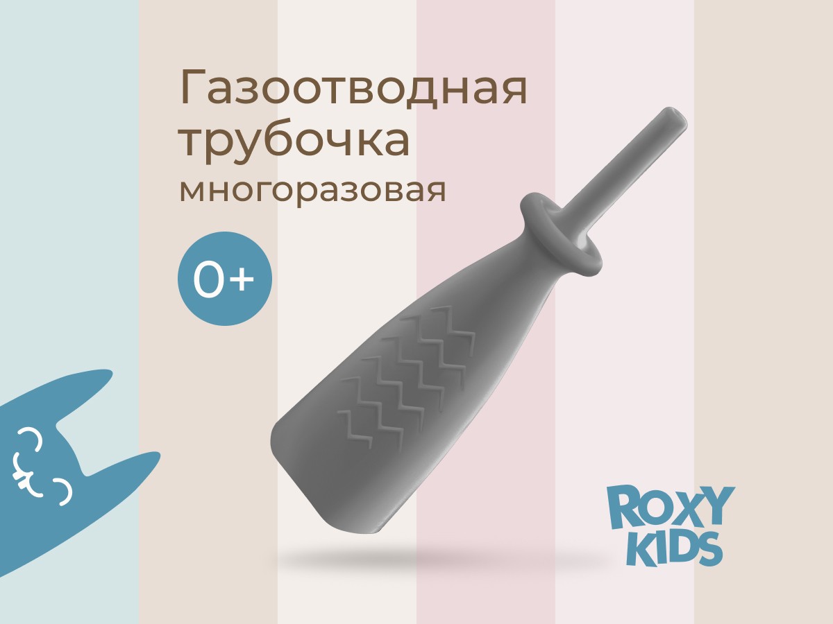 Трубка газоотводная детская для малышей и новорожденных от коликов ROXY-KIDS, цвет серый, дизайн елочка