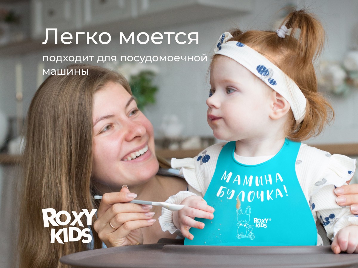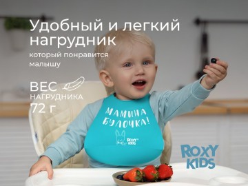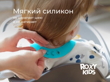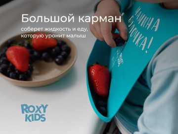 Нагрудник детский с карманом надежно защитит одежду вашего малыша от загрязнений и сохранит чистоту в доме. Мягкий на ощупь, но прочный материал не поцарапает и не натрет нежную шею ребенка. Нагрудник не впитывает запахи и легко моется даже в посудомоечной машине при температуре не больше 80 градусов Цельсия. Отличительной особенностью этого нагрудника является особая надежная застежка, которая позволяет регулировать размер аксессуара, а также не даст ребенку самостоятельно снять нагрудник с себя. Глубокий карман для крошек предназначен для того, чтобы еда не оказалась на столе или на полу. Эргономичная форма повторяет очертания тела малыша. Изготовлен полностью из гипоаллергенного материала. При необходимости слюнявчик можно легко свернуть в трубочку и взять с собой. Материал не деформируется в процессе использования. В ассортименте ROXY-KIDS данный нагрудник представлен в нескольких цветах.