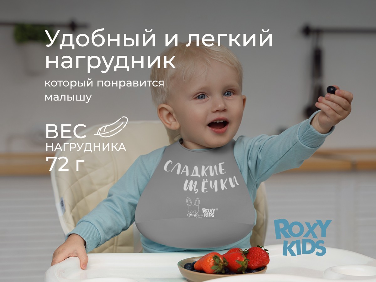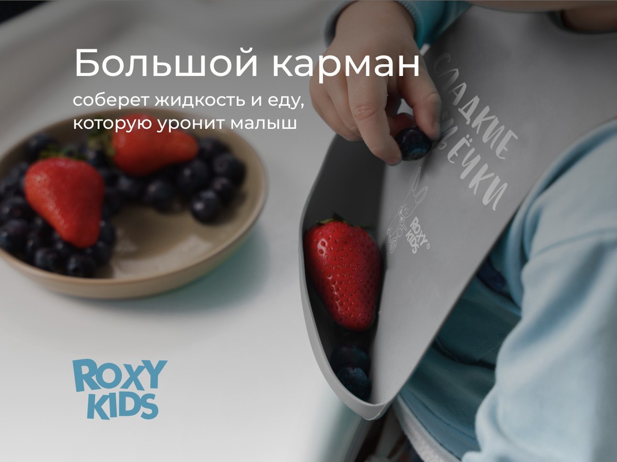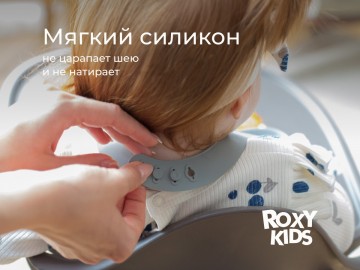 Нагрудник детский с карманом надежно защитит одежду вашего малыша от загрязнений и сохранит чистоту в доме. Мягкий на ощупь, но прочный материал не поцарапает и не натрет нежную шею ребенка. Нагрудник не впитывает запахи и легко моется даже в посудомоечной машине при температуре не больше 80 градусов Цельсия. Отличительной особенностью этого нагрудника является особая надежная застежка, которая позволяет регулировать размер аксессуара, а также не даст ребенку самостоятельно снять нагрудник с себя. Глубокий карман для крошек предназначен для того, чтобы еда не оказалась на столе или на полу. Эргономичная форма повторяет очертания тела малыша. Изготовлен полностью из гипоаллергенного материала. При необходимости слюнявчик можно легко свернуть в трубочку и взять с собой. Материал не деформируется в процессе использования. В ассортименте ROXY-KIDS данный нагрудник представлен в нескольких цветах.