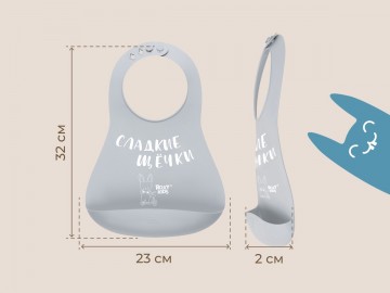 Слюнявчик детский нагрудник для кормления ROXY-KIDS мягкий с кармашком и застежкой, цвет серый