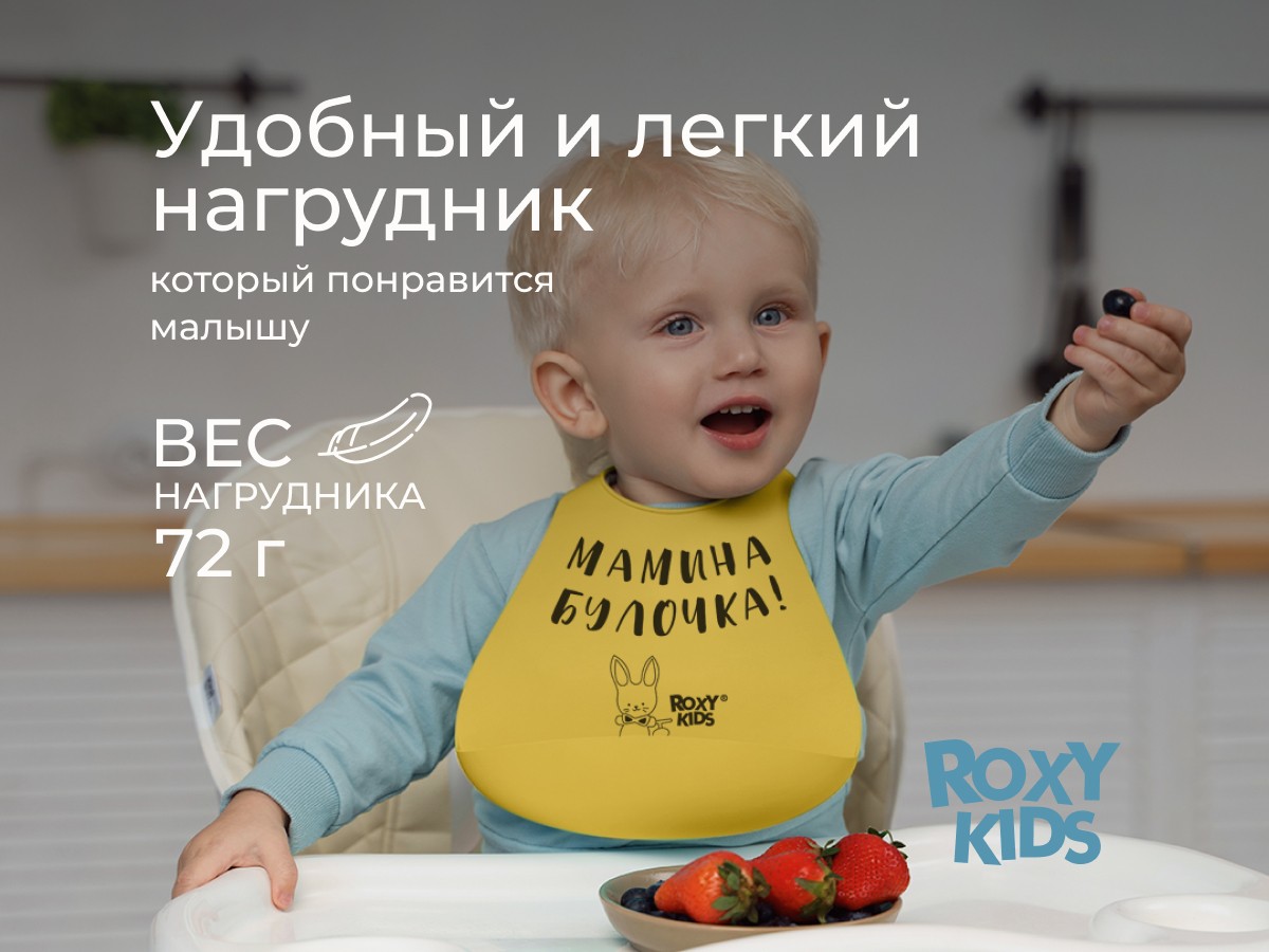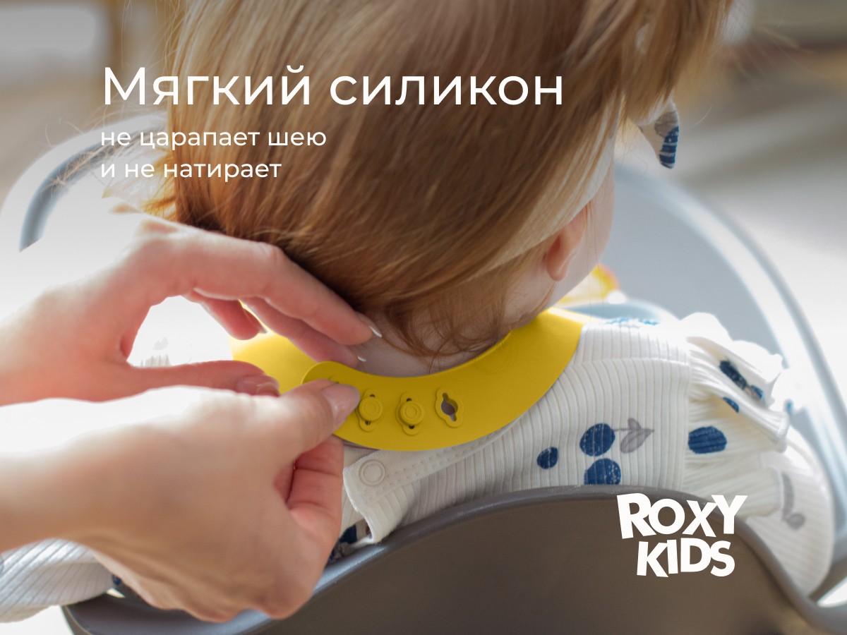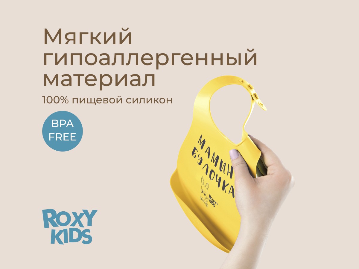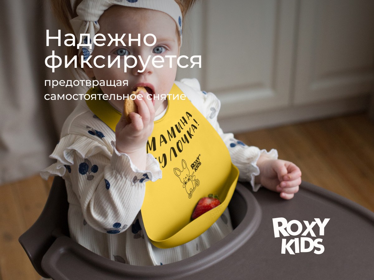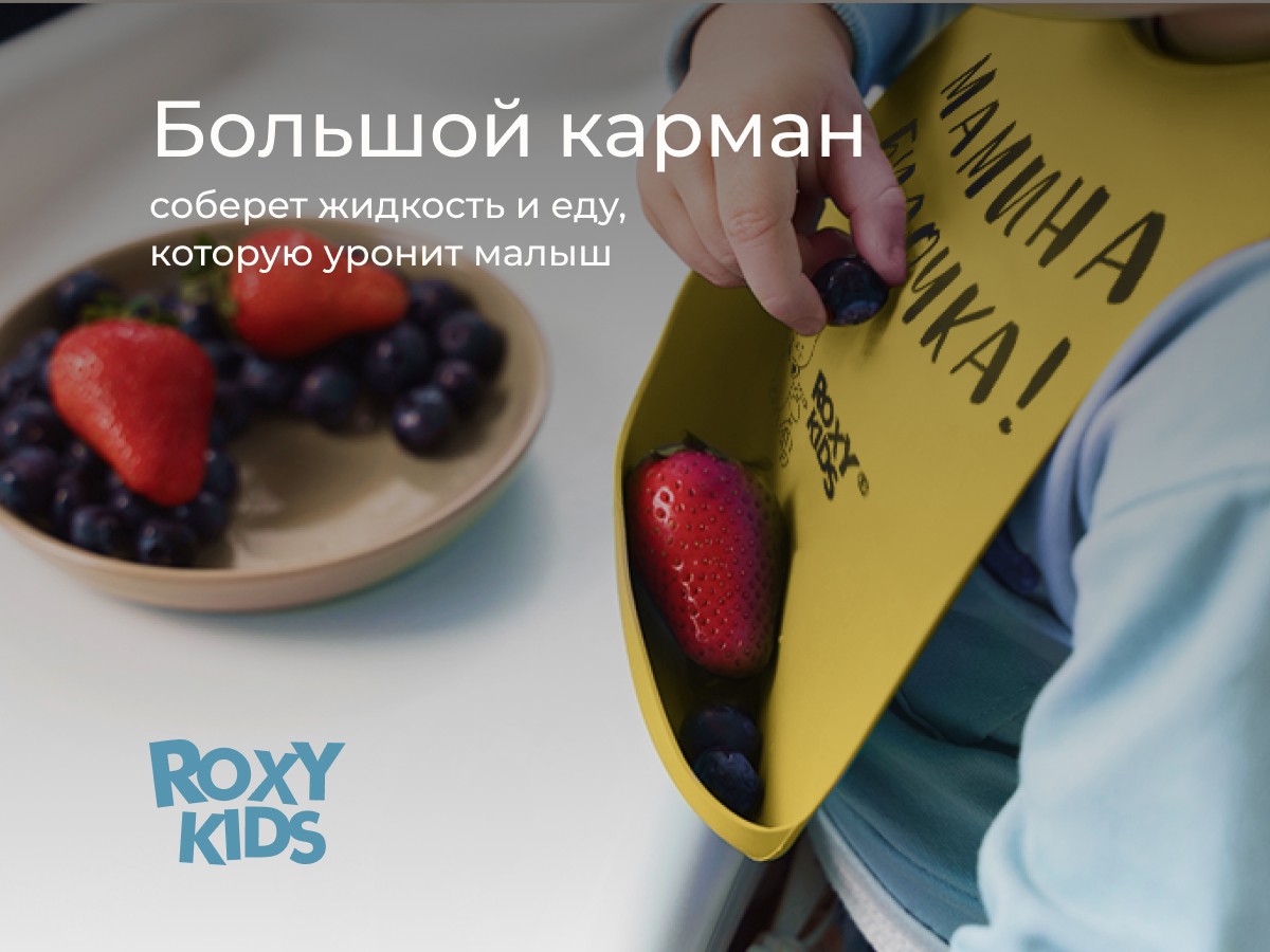 Нагрудник детский с карманом надежно защитит одежду вашего малыша от загрязнений и сохранит чистоту в доме. Мягкий на ощупь, но прочный материал не поцарапает и не натрет нежную шею ребенка. Нагрудник не впитывает запахи и легко моется даже в посудомоечной машине при температуре не больше 80 градусов Цельсия. Отличительной особенностью этого нагрудника является особая надежная застежка, которая позволяет регулировать размер аксессуара, а также не даст ребенку самостоятельно снять нагрудник с себя. Глубокий карман для крошек предназначен для того, чтобы еда не оказалась на столе или на полу. Эргономичная форма повторяет очертания тела малыша. Изготовлен полностью из гипоаллергенного материала. При необходимости слюнявчик можно легко свернуть в трубочку и взять с собой. Материал не деформируется в процессе использования. В ассортименте ROXY-KIDS данный нагрудник представлен в нескольких цветах.
