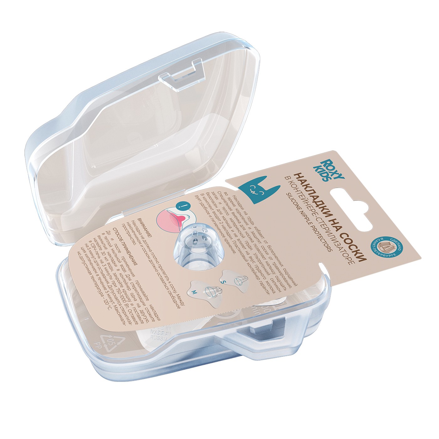 Контейнер-стерилизатор обеспечивает чистоту накладок, а значит, и защиту малыша от микробов. 3 минуты — время стерилизации. Стерилизуйте накладки в микроволновой печи быстро и легко! Подробная информация об использовании на упаковке.