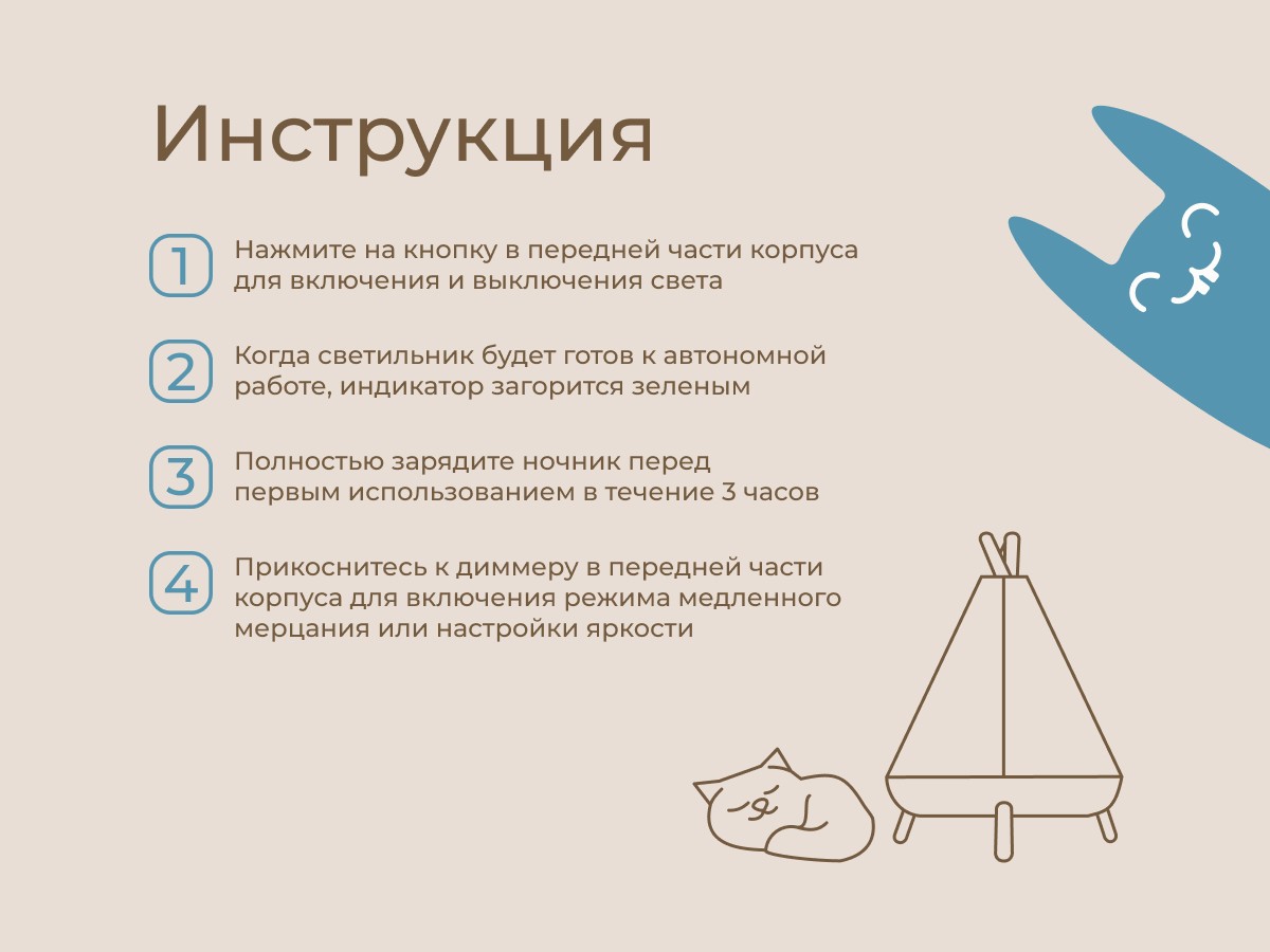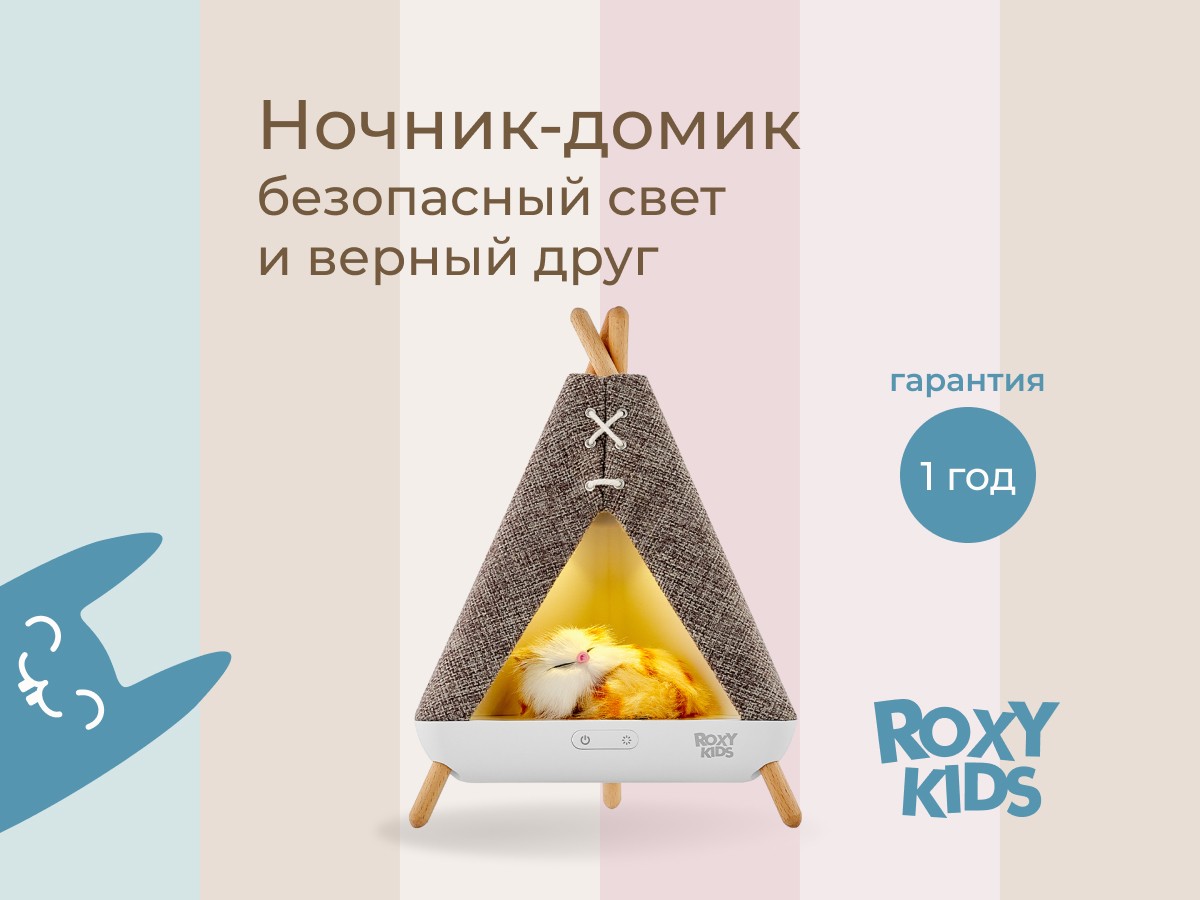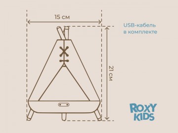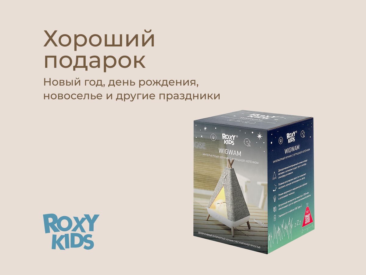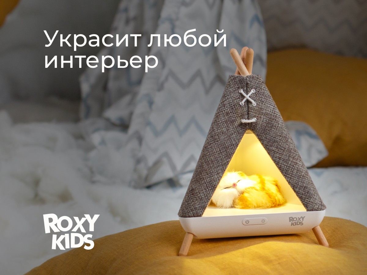 Детский ночник в виде вигвама с котенком от ROXY-KIDS украсит спальню ребенка и сделает любой интерьер уютнее. Фигурка котика внутри легко вынимается для игр. Светодиодная лампа обеспечивает мягкое равномерное свечение, которое успокоит малыша и поможет заснуть. Управление осуществляется всего двумя кнопками на передней панели, что делает использование ночника простым и удобным даже для ребенка! Плавная регулировка яркости позволяет настроить нужную интенсивность света, последняя настроенная яркость сохраняется в памяти ночника. Ночник поддерживает два режима: режим постоянного свечения и режим медленного мерцания. Встроенный аккумулятор емкостью 1200 мАч обеспечивает долгое время автономной работы ночника. Ночник заряжается при помощи кабеля USB Type-C, что делает процесс зарядки очень удобным. Световой индикатор позволяет определить, когда ночник полностью заряжен. В комплект входит подробная инструкция на русском языке. Ночник поставляется в яркой премиальной упаковке, поэтому идеально подходит для подарка! Покрытие ночника сделано из льна, а ножки из натурального бука. Сочетание этих природных материалов создает по-настоящему комфортную атмосферу.