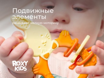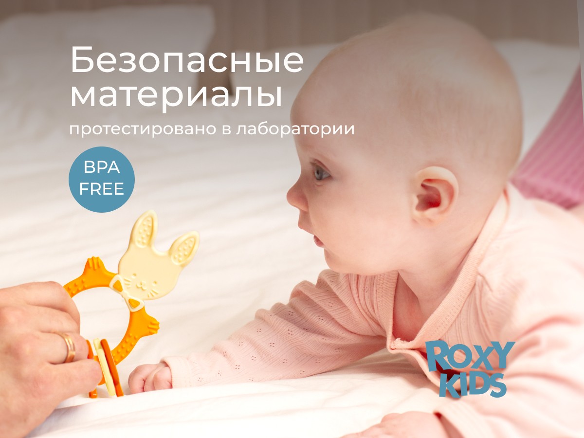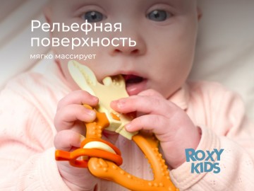Прорезыватель для зубов BUNNY TEETHER от ROXY-KIDS подходит для всех стадий прорезывания зубов у малышей. Он состоит из элементов различной степени жесткости, что позволяет малышу использовать на протяжении всего времени прорезывания. На начальном этапе, когда у малыша раздражены десны, он может чесать их о мягкую рельефную голову зайчика. На завершающем этапе малыш сможет грызть более твердое тело и твердые морковки для лучшего эффекта. BUNNY TEETHER пригодится даже при прорезывания жевательных зубов, потому что ушки зайца по форме похожи на капу, что позволит малышу снять зуд с самых дальних десен. Прорезыватель сделан из безопасных гипоаллергенных материалов (термоэластопласта и полипропилена), так что ребенок может грызть его целыми днями. Еще одна отличительная особенность BUNNY TEETHER это тело, сделанное в форме кольца, которое малыш сможет удобно держать. В ассортименте ROXY-KIDS прорезыватели BUNNY TEETHER представлены в нескольких цветах. Соответствует стандартам безопасности товаров для детей.