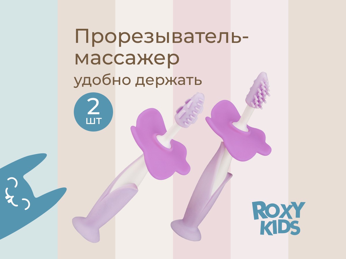 Прорезыватель для зубов и массажер для десен FLOWER от ROXY-KIDS 2 шт, цвет лавандовый