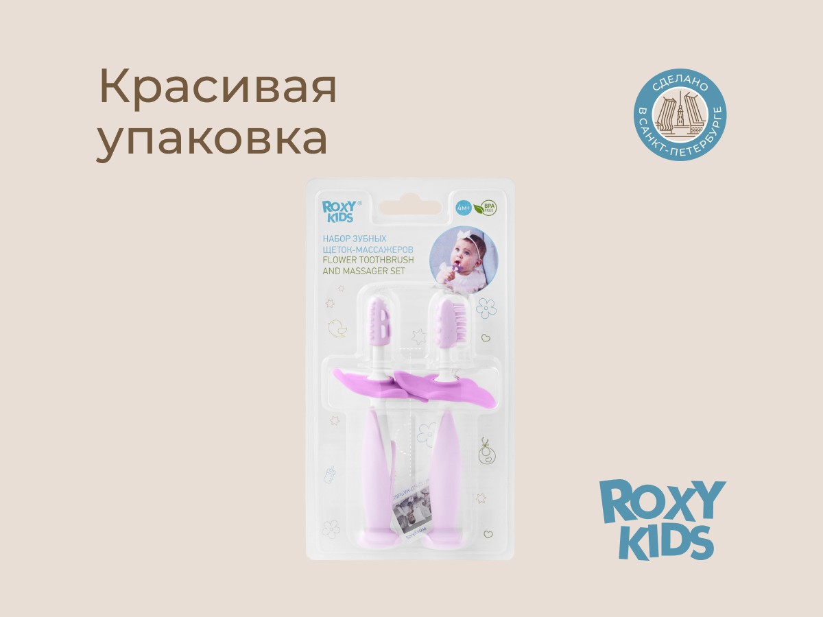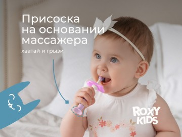 Набор зубных щеток-прорезывателей FLOWER от ROXY-KIDS предназначен для комфортного и безопасного ухода за полостью рта ребенка с первых месяцев жизни. Подходит для массирования раздраженных десен и чистки первых зубов. Ограничитель защищает малыша от заглатывания, снимается при необходимости Рельефная поверхность обеспечивает бережный массаж десен. Элементы разной степени жесткости, мягкий массажер и более жесткий ограничитель. Ребенок сам выбирает, какой элемент ему нравится грызть. Удобно хранить на присоске на различных поверхностях. Массажеры легкие и удобно ложатся в маленькую детскую ручку. Ребенок самостоятельно держит грызунок, мелкая моторика развивается быстрее. Ручка удобна и для взрослых, которые захотят почистить малышу его первые зубки. Прорезыватели просты в уходе, не скапливают на себе пыль, достаточно промыть теплой водой. Набор сертифицирован, материал гипоаллергенен и безопасен для детей.
