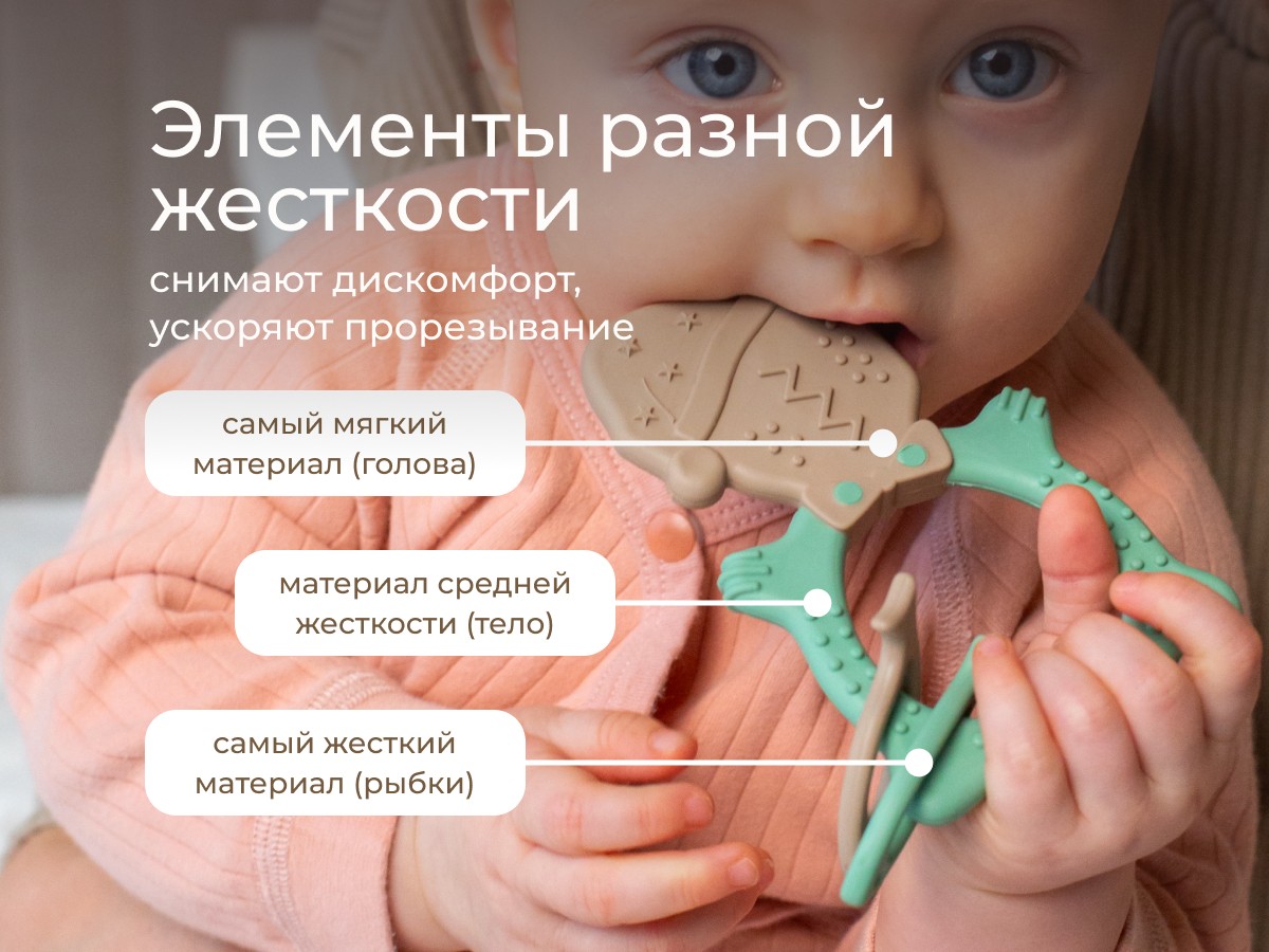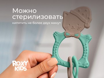 Прорезыватель для зубов MEOW TEETHER от ROXY-KIDS подходит для всех стадий прорезывания зубов у малышей. Он состоит из элементов различной степени жесткости, что позволяет его использовать на протяжении всего времени прорезывания. На начальном этапе, когда у малыша раздражены десны, он может чесать их о мягкую рельефную голову котенка. На завершающем этапе малыш сможет грызть более твердое тело и жесткие элементы в виде рыбок для лучшего эффекта. Прорезыватель сделан из безопасных гипоаллергенных материалов (термоэластопласта и полипропилена), так что ребенок может грызть его целыми днями. Еще одна отличительная особенность MEOW TEETHER – это тело, сделанное в форме кольца, которое малыш сможет удобно держать. В ассортименте ROXY-KIDS прорезыватели MEOW TEETHER представлены в нескольких цветах. Соответствует стандартам безопасности товаров для детей.