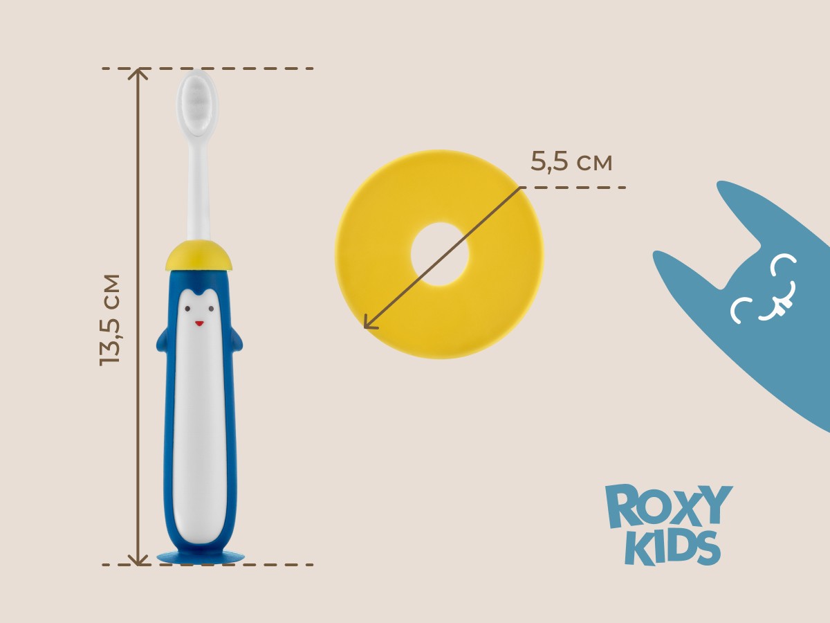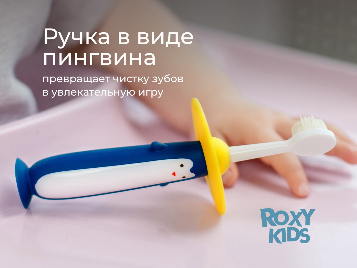 Зубные щетки PENGUIN от ROXY-KIDS с ультрамягкой щетиной предназначены для комфортного и безопасного ухода за первыми зубками и полостью рта малыша. Зубная щетка оснащена небольшой головкой и мягкой щетиной, которая бережно удаляет налет с детских зубов, а также аккуратно массирует десны. Прорезиненная ручка в виде пингвина развлекает ребенка, а шляпа-сомбреро выполняет функцию ограничителя, защищая малыша от заглатывания щетки. Присоска обеспечивает щетке вертикальную устойчивость и гигиеничное использование.