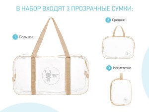 Сумки в роддом прозрачные для беременной 3 шт, цвет бежевый
