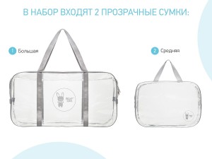 Сумки в роддом прозрачные для беременной 2 шт, цвет серый