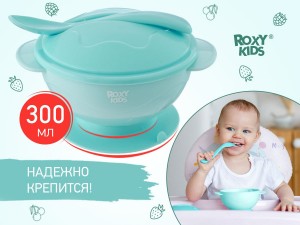 Тарелка на присоске с крышкой и ложечкой, цвет голубой