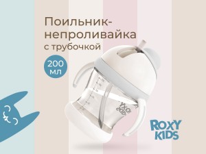 Поильник-непроливайка с трубочкой ROXY-KIDS, кокосово-серый